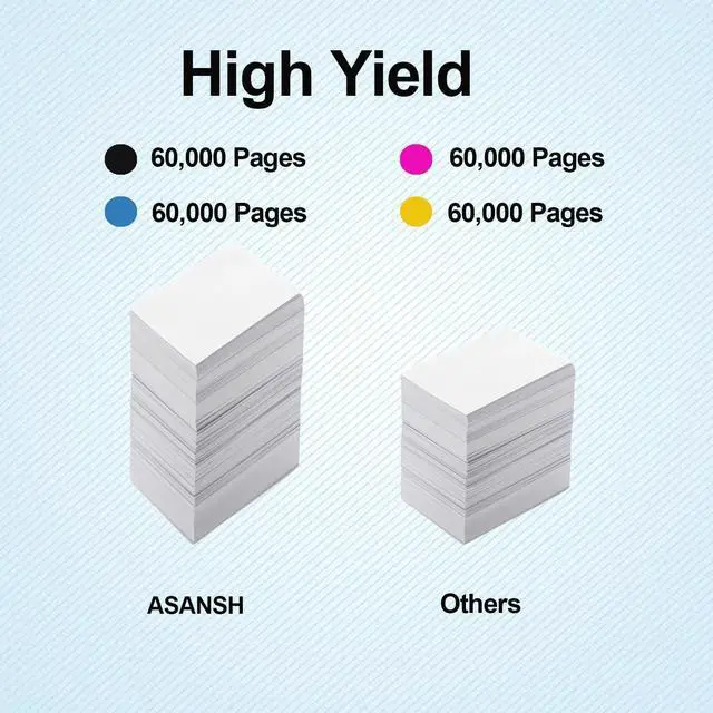 Lasting Performance: black can print up to 60,000 pages, colors each can each print up to 60,000 pages, these page yields are based on 5% coverage with A4 letter size