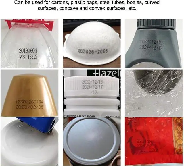 1. APPLICATION: Handheld inkjet printer gun has easy to carry, stable performance, can spray code on curved, irregular, small size space, suitable for carton, hope bag, steel pipe, round simple, bottle hat, bottle body, curved surfaces.