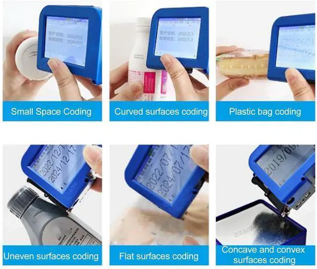 APPLICATION: Handheld inkjet printer gun has easy to carry, stable performance, can spray code on curved, irregular, small size space, suitable for carton, hope bag, steel pipe, round simple, bottle hat, bottle body, curved surfaces.