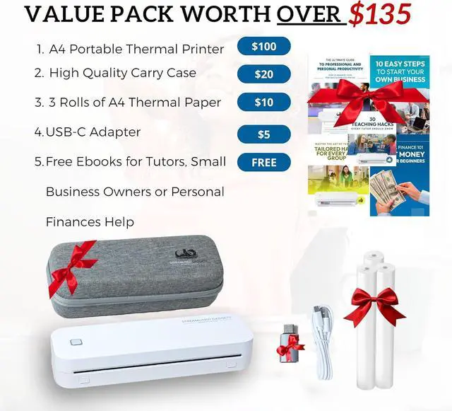Enjoy three free rolls of thermal paper with your purchase, allowing you to print immediately without ink expenses.