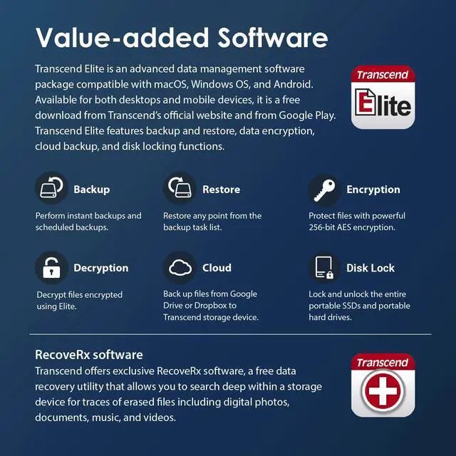 A touch of opulence at the tips of your fingers, Transcend lightweight StoreJet 25C3N is more than an external hard drive-it's a fashion statement. With Transcend Elite software, you can easily back up files from cloud storage solutions including Dropbox and Google drive to the StoreJet 25C3N.