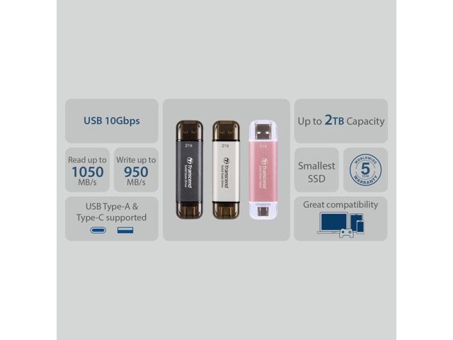 512GB Transcend ESD310 Portable SSD Dual USB (Type-A and Type-C) Pink
