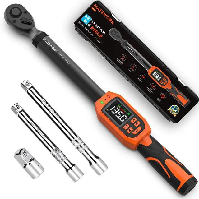 Digital Torque Wrench 3/8" Drive, (5-99.5 Ft.Lb/6.7-135Nm), ±1% Accuracy Electric Torque Wrench Digital with 2 Extension Bars, Buzzer and LED Flash Alert, for Bike/Moto/Auto Repair