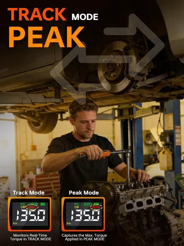 2 Tracking Modes & 5 UnitsThis digital torque wrench 3/8 drive features Peak and Trace modes for real-time monitoring and max torque capture. Switch seamlessly between 5 units (N·m, ft-lb, in-lb, kg-cm, kg-m). Store up to 500 records and set 10 preset values for quick access to frequently used torque settingsboosting efficiency on every job