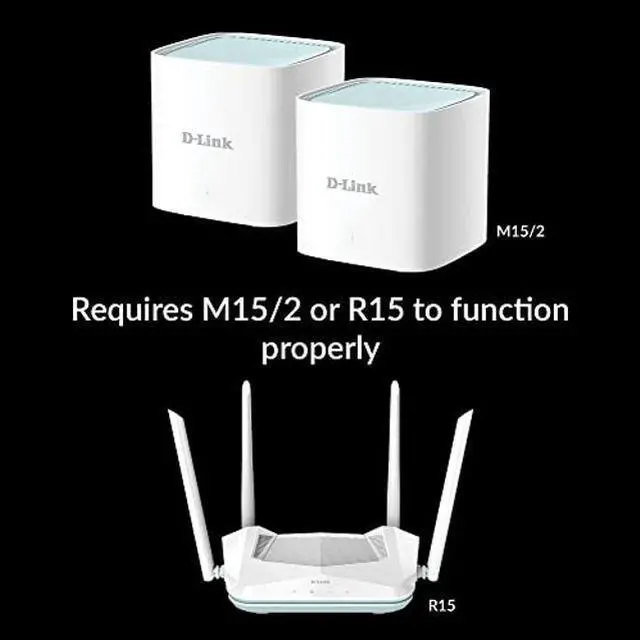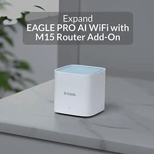 The Eagle PRO AI Series by D-Link offers the advanced M15 Mesh Router Add-On. Part of the system's modular wholehome WiFi Mesh category, as an add-on to the AX1500 M15/2 Mesh family, this single unit allows you to expand your home WiFi as your needs or housing changes. It delivers advanced AI capabilities that continuously monitor and intelligently manage your current residential Wi-Fi to keep it performing optimally. Experience powerful, high-quality online experiences in devicedense homes - just add more M15 units to fulfill your coverage needs. It works specifically with M15/2 and R15 products.