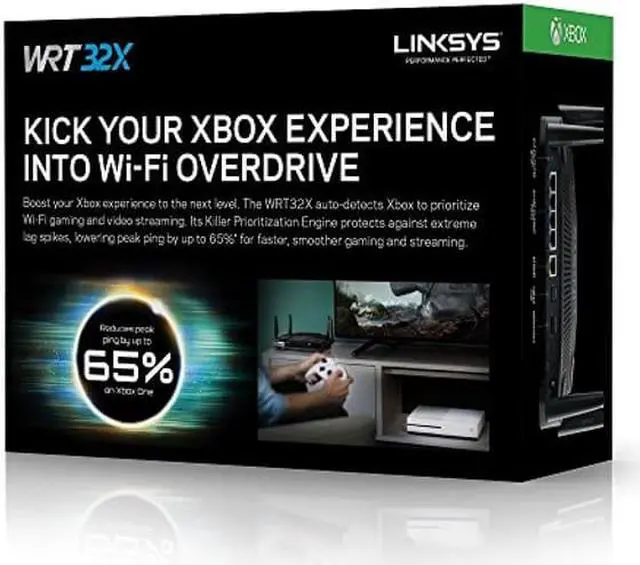 The WRT32XB router takes Xbox gaming to extremes. It auto detects your Xbox device to prioritize gaming and streaming. The Killer prioritization engine identifies, prioritizes and accelerates gaming network traffic above all other devices in your home to deliver a faster, superior Xbox gaming experience. Turning the Killer engine on protects from extreme lag spikes and reduces peak ping by up to 65 percent on Xbox, delivering consistent and superior reaction time during intense gaming scenarios. User interface and firmware is custom built for gaming traffic control. It features AC3200 Wi Fi speeds, 1.8GH z dual core processor, and a pro grade Gigabit Ethernet switch with four ports provides lightning fast connection perfect for LAN parties.