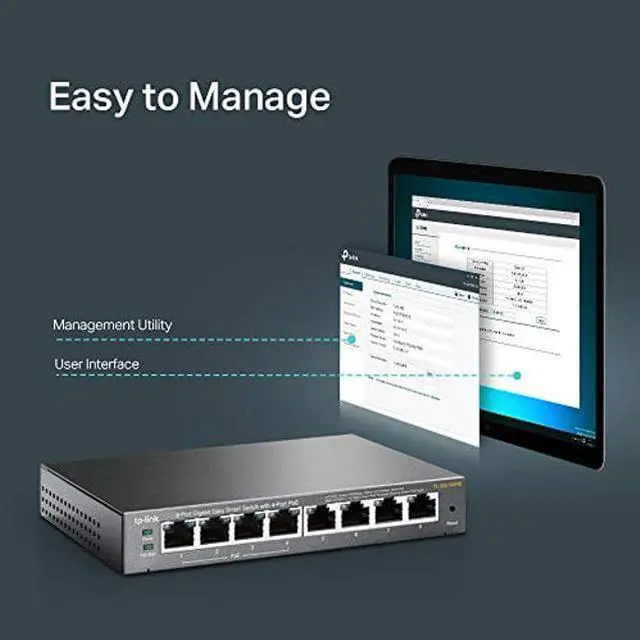 Smart connectivity and power for 4 PoE devices (wireless access points, VoIP phone, IP Camera) and 3 additional wired connections (laptop, printer, etc)4 PoE ports (802. 3af) supporting up to 53w total PoE powerSimple setup and configuration with easy-to-use web-browser based interfaceSegment your network and prioritize your traffic with VLAN, QoS, IGMP Snooping, rate limiting and traffic monitoringMonitor your network status and your cabling with the port statistics and cable health8 auto-sensing 10/100/1000 Mbps Gigabit Ethernet ports with up to 16Gb non-blocking switchingLIFETIME, Next Business Day replacement and 24/7 chat with a NETGEAR expertTL-SG108PE offers network monitoring for users to observe trafc behavior.