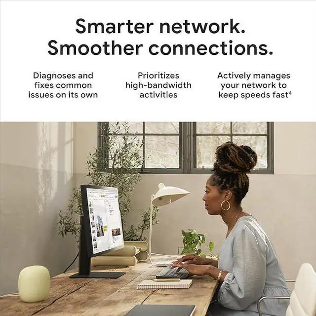Nest Wifi Pro automatically adjusts your Wi-Fi networks performance and activity; it prioritizes video calls and helps websites load quickly