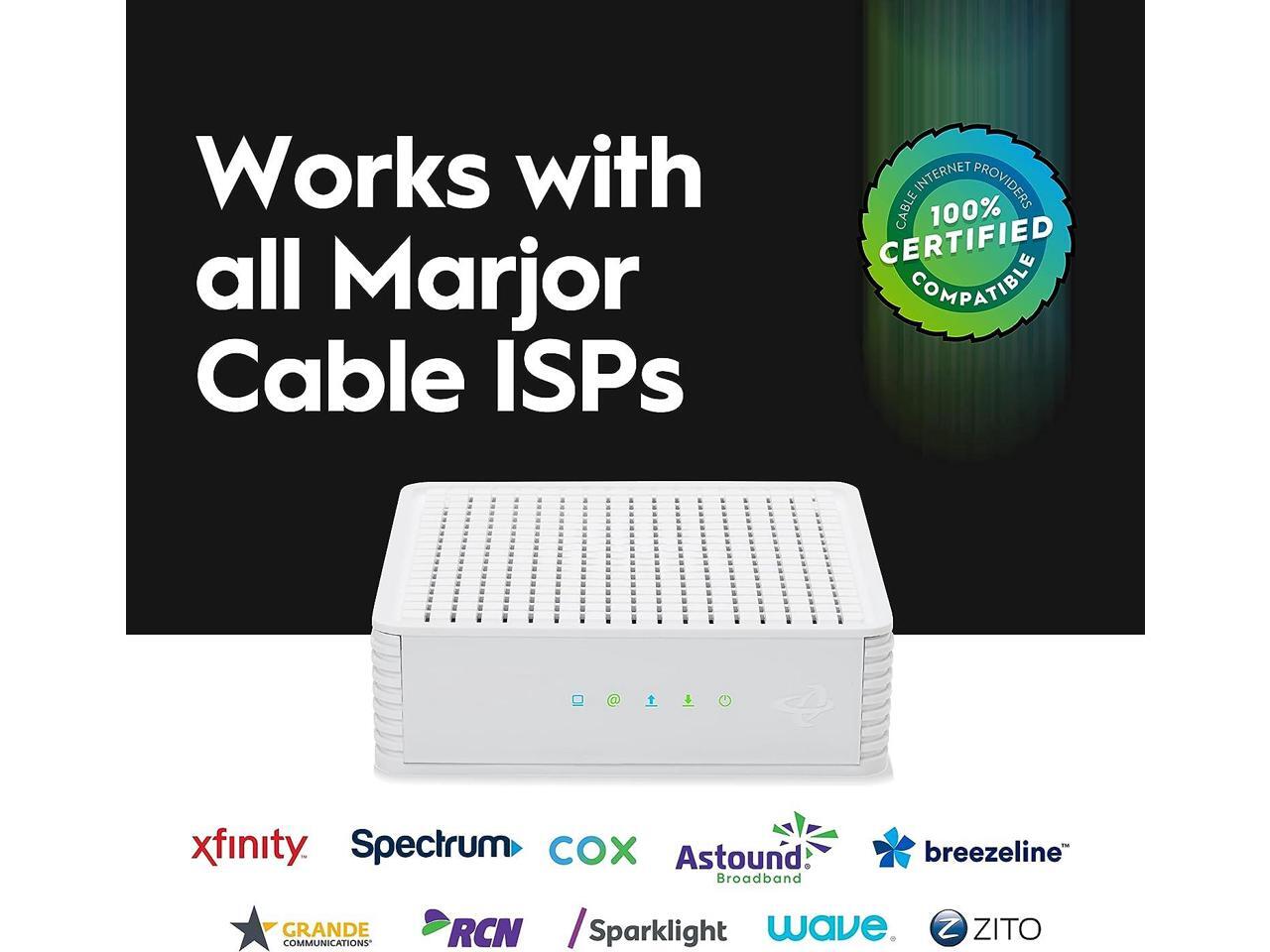 - CERTIFIED to work with Comcast Xfinity, Comcast Xfinity Business, Charter Spectrum, Cox Gigablast, CableOne Sparklight, Cogeco Breezeline and Zito Media. Also works with Astound, Grande, RCN and Wave. Not compatible with AT&T, Verizon, CenturyLink, DSL Providers, DISH, DirecTV and any bundled voice service.