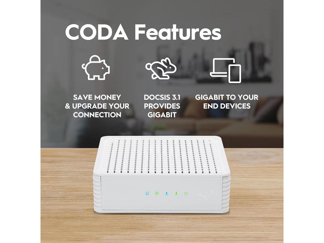 Hitron CODA DOCSIS 3.1 Modem | Pairs with Any WiFi Router or Mesh WiFi | Certified with Comcast Xfinity, Charter Spectrum, Cox | 10x Faster Than DOCSIS 3.0 | Cable Modem with 2X 1 Gbps Ethernet Ports