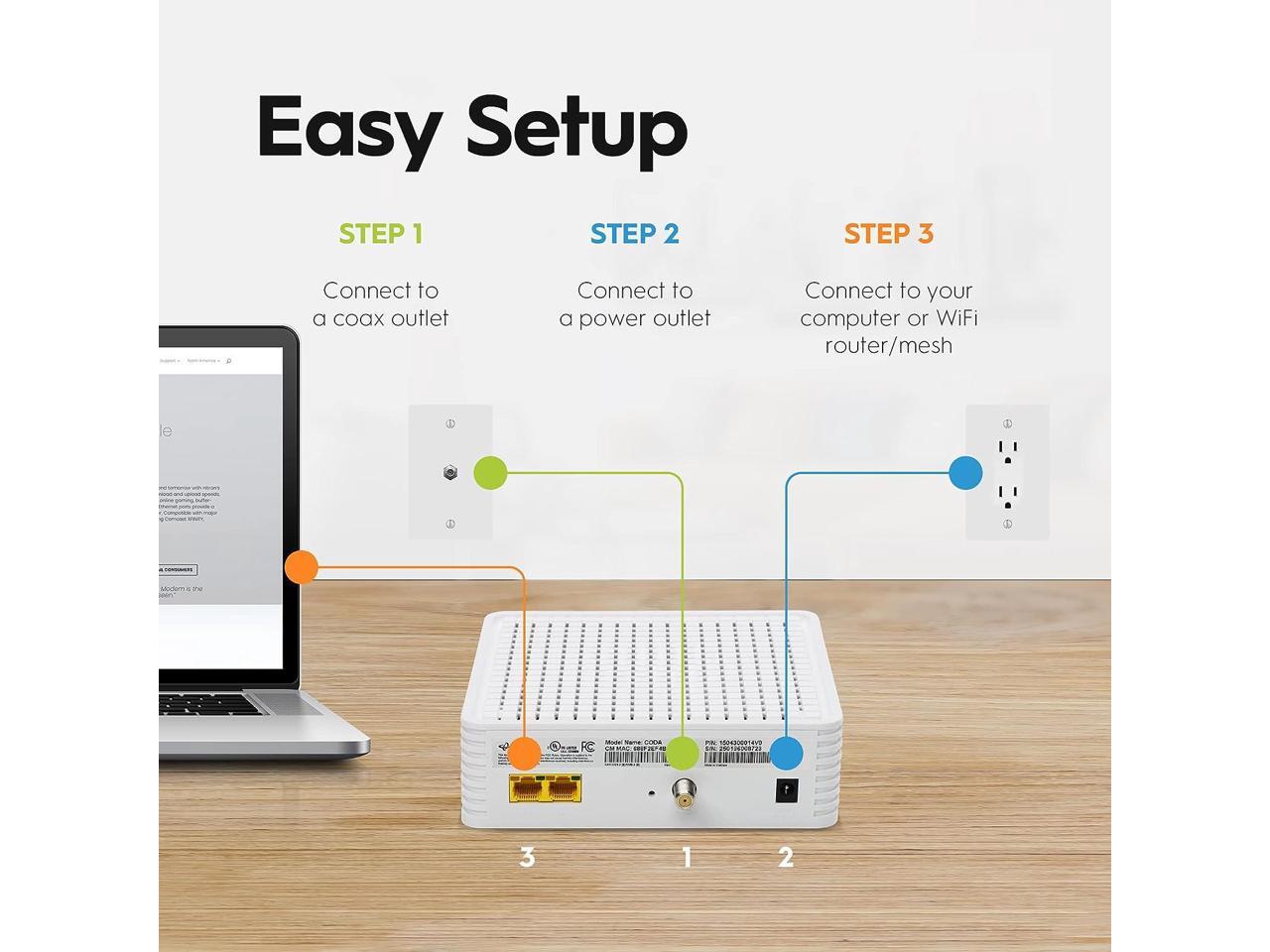 - WORKS WITH ANY WIFI ROUTER or WIFI MESH: Pair with a WiFi Router with this 3.1 DOCSIS Modem to connect all of your WiFi devices to the Internet. This cable internet modem does NOT have a built-in wireless router.