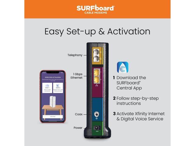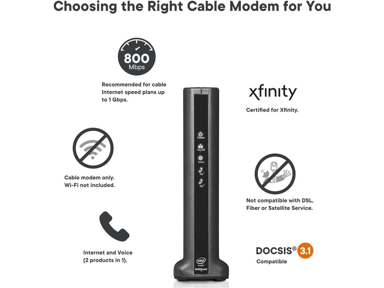 T25 SURFboard Cable Modem DOCSIS 3.1800 Mbps Max Internet Service for Approved Comcast Xfinity with Voice Telephone Service Port