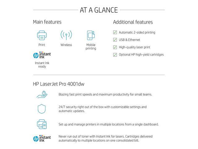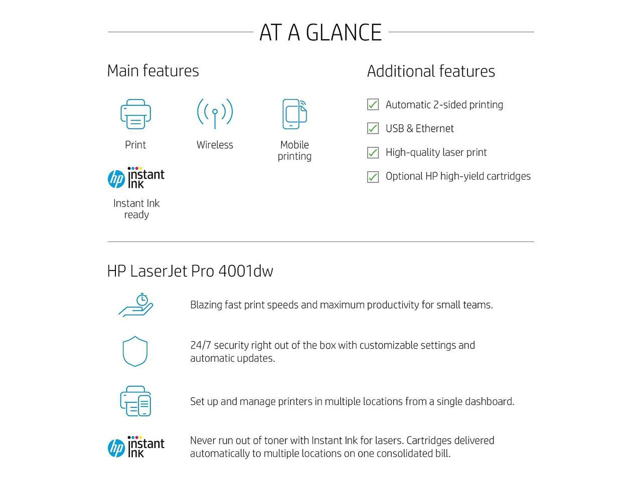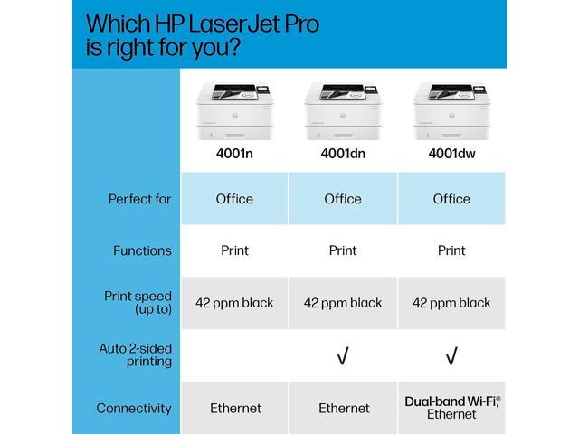 HP LaserJet Pro 4001dw Laser Printer, Black And White Mobile Print Up to 80,000