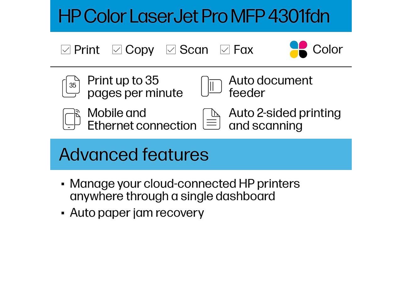 HP Color LaserJet Pro MFP 4301fdn Laser Printer, Color Mobile Print, Copy, Scan,