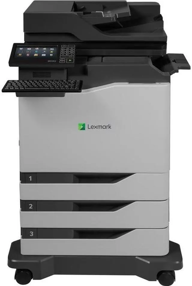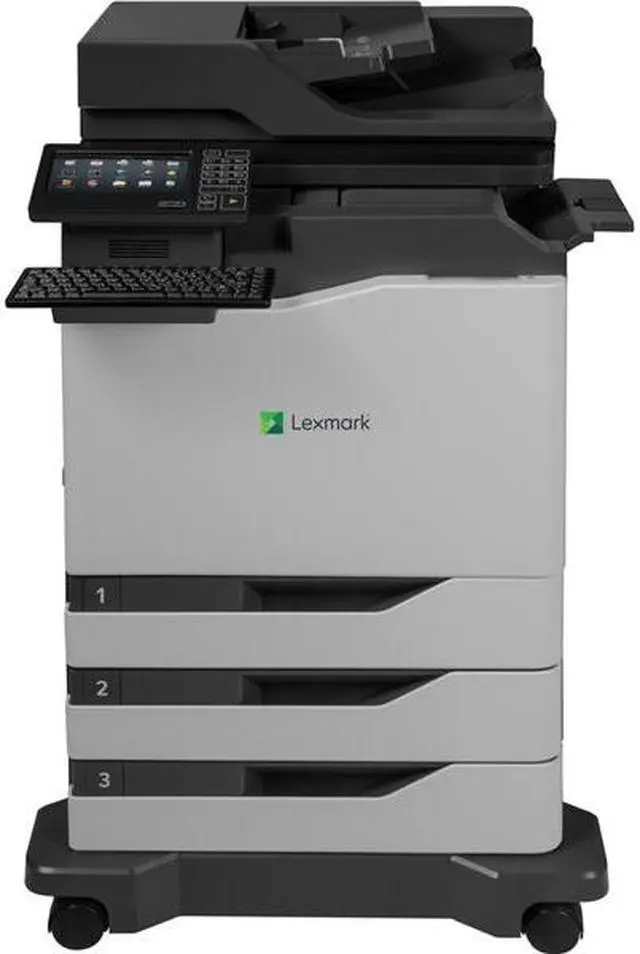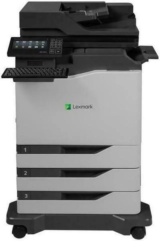 eSF flexibility Lexmark-exclusive Embedded Solutions Framework (eSF) makes the MFP programmable to meet the needs of each customer and industry. Several software solutions are included, and more can be added. Advanced media handling with built-in staple finishing It starts with standard input capacity of up to 1750 pages (expandable to 4500), includes a compact inline staple finisher and prints on the broadest media weight range of any letter/A4 color laser MFP--from tissue-thin paper to thick card stock. Multi-touch screen The CX820 Series' 7-inch eTask color touch screen features an ultra-smooth surface that can be activated by almost anything, including pens, fingertips or nails--without pressure or direct skin contact.