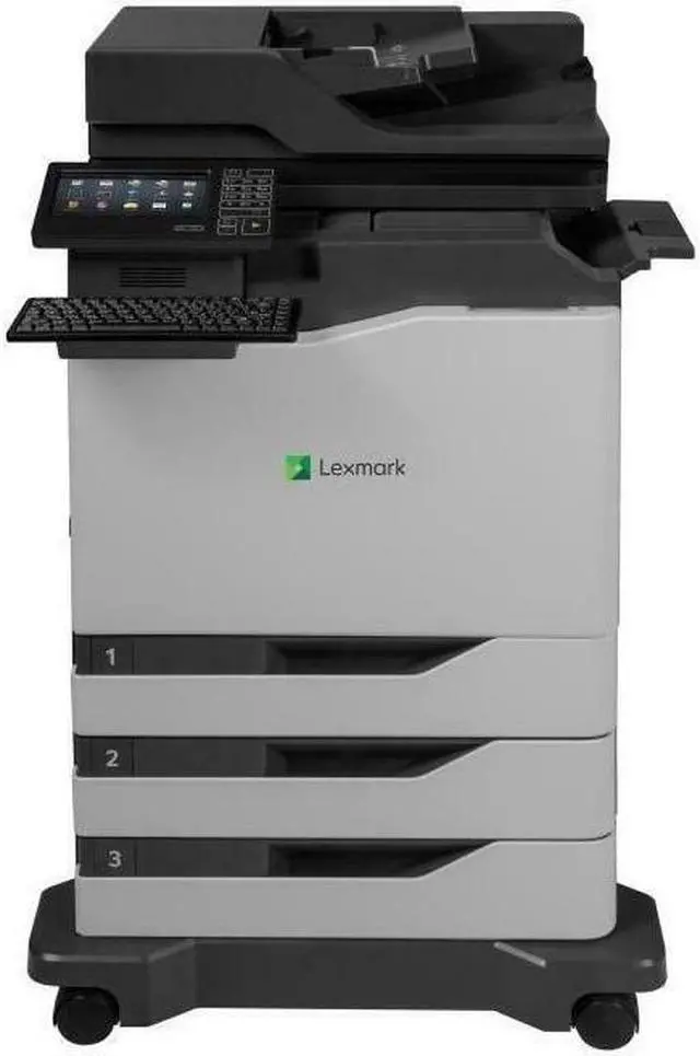 Fast output and strong duty cycle mean high productivity The Lexmark CX820dtfe workgroup color letter/A4 MFP prints up to 52 pages per minute and has business-class features like preinstalled software solutions and a staple finisher. Production-class performance A 1.33 GHz quad core processor with 2 GB of standard memory helps the CX820 Series handle complex jobs, while print speed of up to 52 ppm allows users in high-volume print environments to get fast color output. Even large color print jobs complete quickly so users are more productive. Professional color Professional color features include ultra-sharp 4800 Color Quality, PANTONE® calibration and spot color replacement for repeatable color accuracy even with critical corporate identity elements.