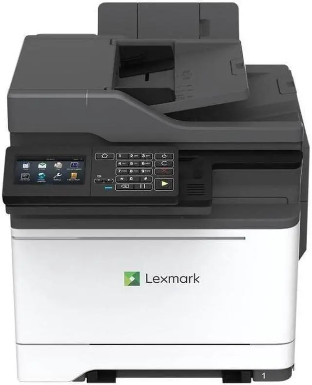 The multifunction Lexmark CX522ade builds on output at up to 35 [33] pages per minute with a 4.3-inch [10.9-cm] color touch screen.