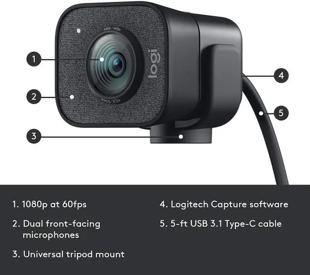 Take your content to the next level or share your passion for the first time with Logitech streamcam. Featuring smooth, accurate 1080p at 60 fps video and support for full HD vertical capture, it’s an ideal camera for Twitch, YouTube, Facebook, Instagram stories, or anywhere else you broadcast content. Ai facial tracking auto focus and exposure and versatile mounting options ensure you’re always seen in your best light and at the perfect angle. Premium audio performance s you sound vibrant and authentic to your audience at all times. Plus, enhanced Logitech capture software lets you create content with multiple cameras, text overlays, scene transitions and other professional studio controls.