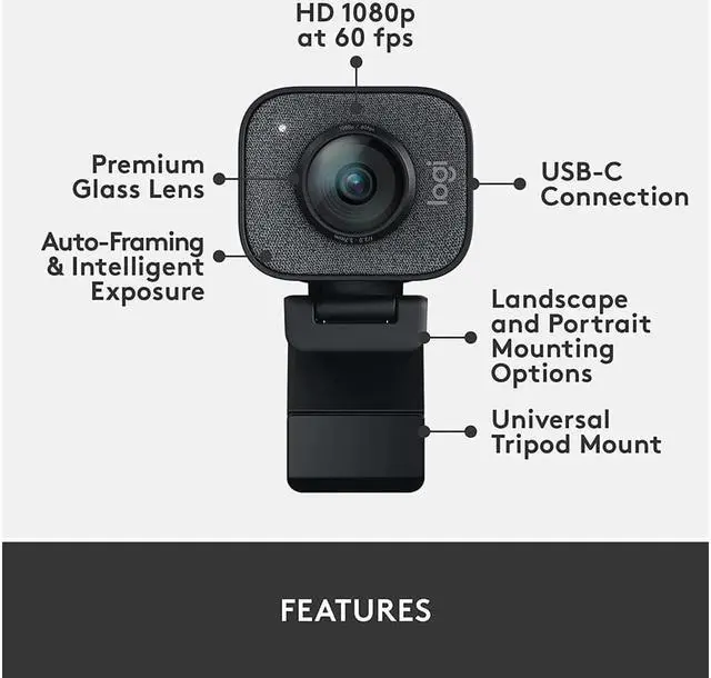 The Logitech StreamCam premium webcam streams and records in full 1080p HD resolution at 60 fps, delivering professional-quality results for YouTube videos and Twitch streaming. Create sharp, natural video with smooth motion and crisp details thanks to a premium glass lens and smart auto-focus system. Advanced features like automatic face tracking always keeps you front and center, even if you move around, while intelligent exposure ensures you look your best in any lighting. StreamCam is optimized for popular live streaming software like Open Broadcaster Software (OBS), XSplit and Streamlabs OBS so you can instantly stream to all your favorite platforms.