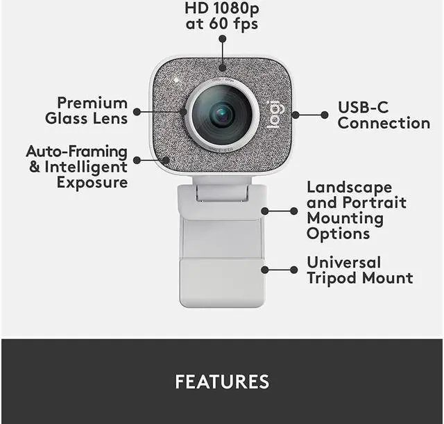 The Logitech StreamCam premium webcam streams and records in full 1080p HD resolution at 60 fps, delivering professional-quality results for YouTube videos and Twitch streaming. Create sharp, natural video with smooth motion and crisp details thanks to a premium glass lens and smart auto-focus system. Advanced features like automatic face tracking always keeps you front and center, even if you move around, while intelligent exposure ensures you look your best in any lighting. StreamCam is optimized for popular live streaming software like Open Broadcaster Software (OBS), XSplit and Streamlabs OBS so you can instantly stream to all your favorite platforms.