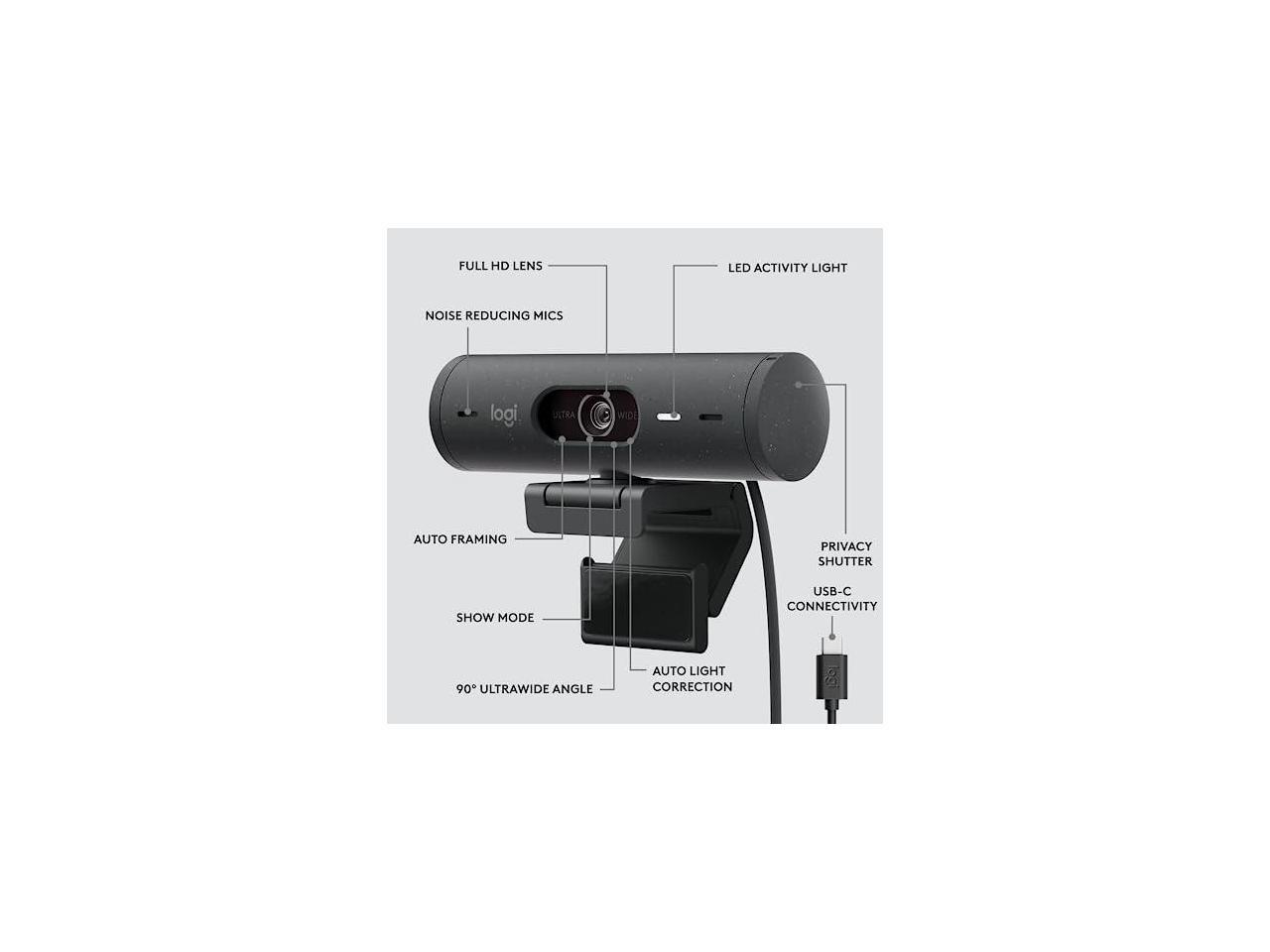 Logitech BRIO 505 Webcam - 4 Megapixel - 60 fps - Graphite - USB Type C - 1920 x 1080 Video - Auto-focus - 4x Digital Zoom - Microphone - Notebook, Display Screen, Monitor