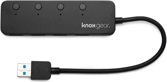 Up-to-Date Design Designed to meet the needs of today's creators and professionals, the Knox Gear Multipurpose Webcam Holder and Light Stand provides a widely compatible smartphone holder and a selfie ring light for the perfect atmosphere. It will come in handy whenever you need extra light for livestreaming, makeup, selfies, video calls or reading. Livestream with Skill Perfect for steady and well-lit streaming to YouTube, Instagram, Facebook, Twitter, Twitch and more, this 2-in-1 kit can also work as a desk lamp for your bedroom or office. Easy to Use The kit comes with easy-to-use features such as a 360-degree rotating gooseneck arm, which allows you to adjust to any angle you like. It also has a clip for attaching to a desk, USB connectivity and a Bluetooth remote control shutter release. Easily access the brightness, light mode and on/off controls. Knox Gear 4-Port USB 3.0 Hub The Knox Gear 4-Port USB 3.0 Hub instantly adds four USB 3.0 ports to any compatible device. The 3.0 hub supports data transfers up to 5 gps. LED indicators display the power status for each port, and each port was designed with its own turn on/off switch.