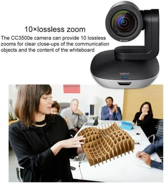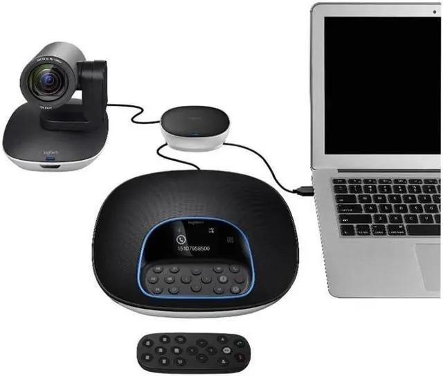 The Logitech CC3500e, also known as the Logitech Group Video Conferencing System, is a state-of-the-art solution designed to enhance communication in professional settings. This system is ideal for mid to large-sized conference rooms and offers Full HD video quality with a resolution of 1080p. It features a wide-angle lens that provides a broad field of view, ensuring that all participants are visible during a meeting.