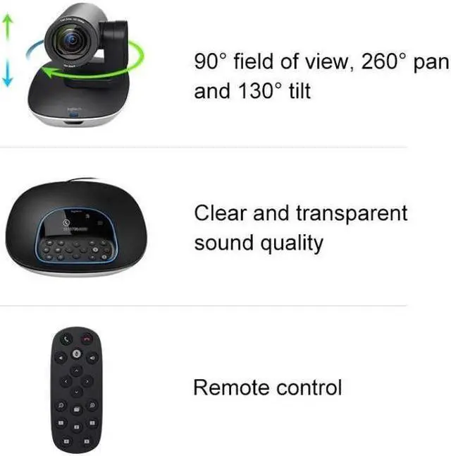 Additionally, the Logitech CC3500e includes a remote control for convenient operation of the camera and audio functions. It also supports Bluetooth and NFC, allowing for quick pairing with mobile devices.
