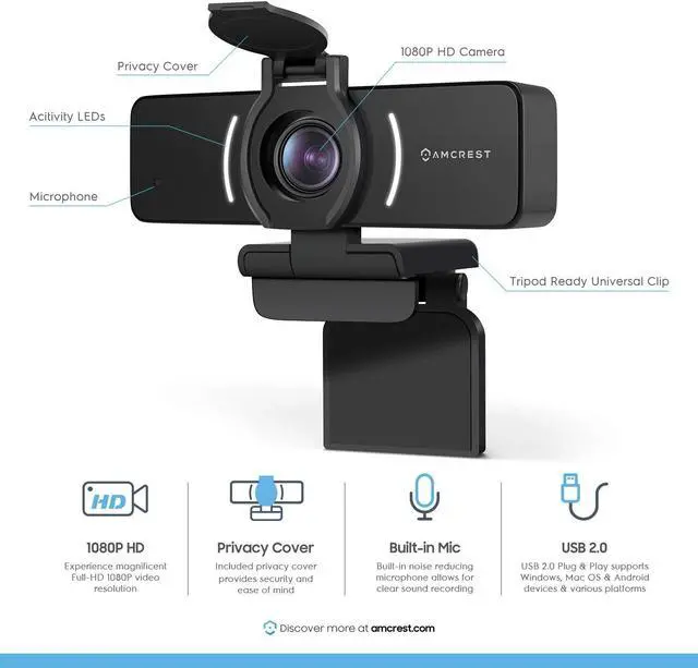 The Amcrest 1080p HD Webcam comes with a Privacy Cover, the privacy covers your webcam when not in use, and prevents web hackers from spying on you. Provides security, privacy, and ease of mind.