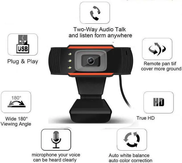 USB Driver-Free Webcam 480P 2MP Web Camera PC Laptop Camera with Microphone LED Light Automatic White Balance for Live Video, Webcast, Video Conference, Distance Teaching