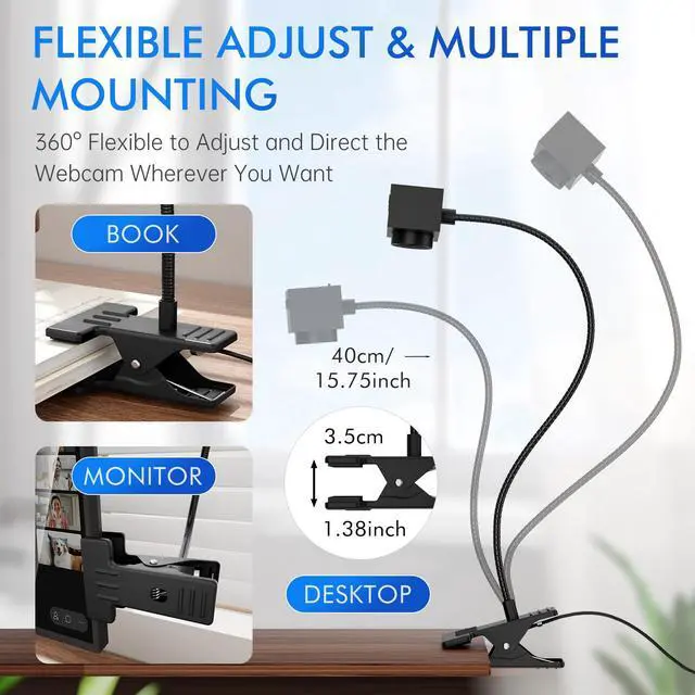 Flexible Positioning and Multi-Angle Adjustment The adjustable gooseneck and clamp of this PC camera webcam allow precise positioning for various uses, such as recording desktop files or capturing classroom courseware. Its compatibility with desktops, monitors, and sideboards (up to 1.38-inch thickness) makes it an excellent webcam for laptops or desktop setups. Use it to enhance your WGU exams, sketch presentations, or FaceTime chats with professional precision.