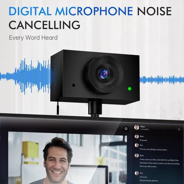 Webcam with Noise-Canceling Microphone Featuring a noise-canceling mic, this computer camera for desktop captures crystal-clear sound up to 26 feet away. Enhanced with noise reduction, its ideal for online meetings, chats, or virtual classrooms. This webcam USB C is versatile, delivering superior sound and video for hands-free communication, even in challenging environments. Its noise-canceling feature ensures your voice is always crisp and clear, making it a perfect choice for professional video calls.