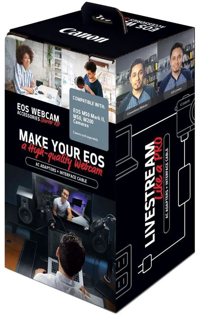 Take your video communication to the next level with the EOS Webcam Accessories Starter Kit, specifically designed for select EOS M Cameras. This kit is your key to transforming your compatible EOS M Series camera, including the EOS M50 Mark II, M50, and M200, into a high-performance webcam that delivers superior video quality.