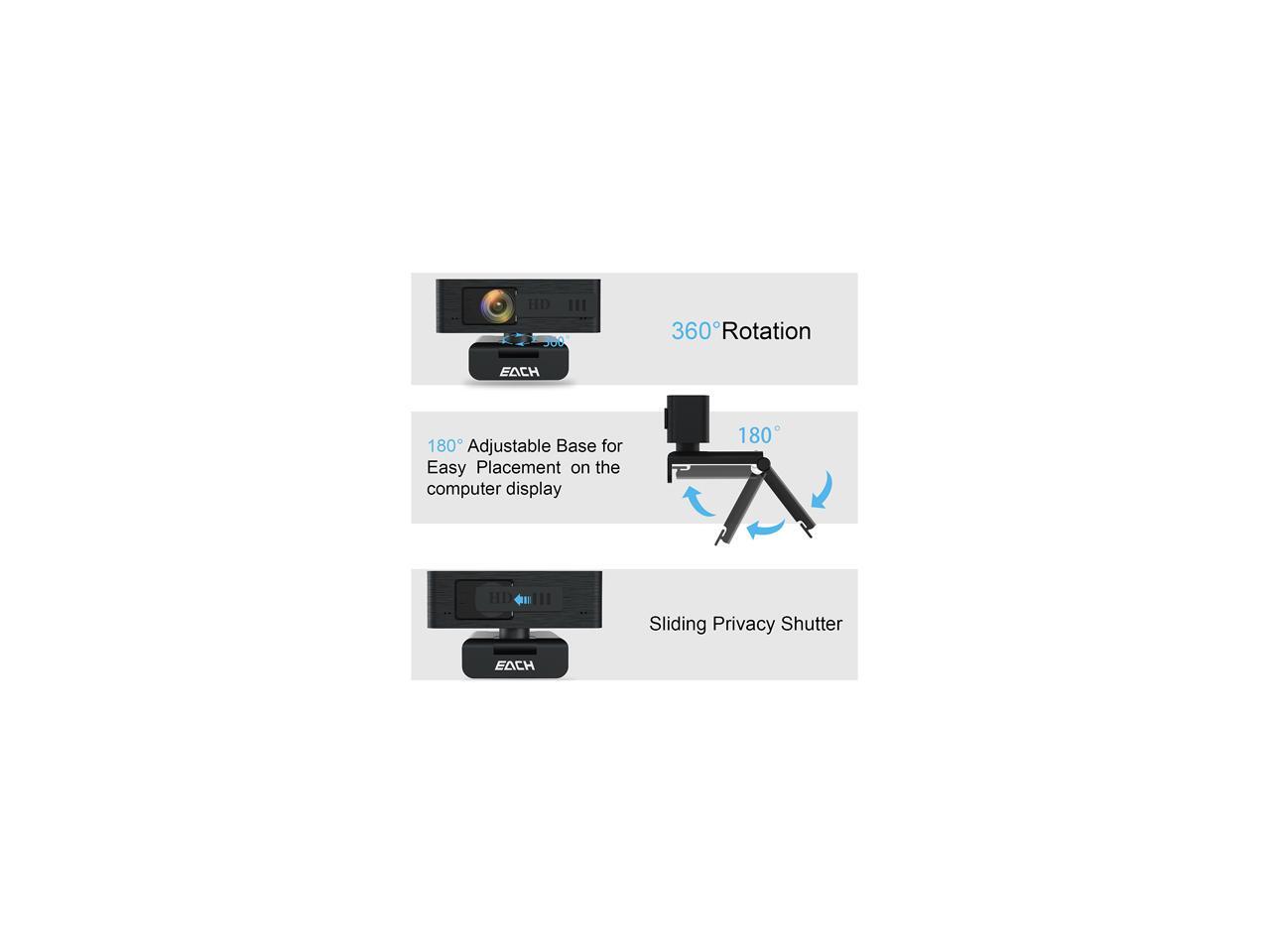 EACH Full HD Webcam 1080p Webcam Autofocus Camera HDR USB Webcam with Privacy Cover Widescreen Video Calling and Recording for Computer Laptop PC Skype Stream