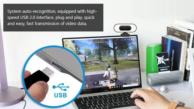 Insert it into computer directly:Connect the computer via USB; the red indicator light of the camera will light up; then open the video tool; manually or automatically select the USB camera; when the Webcam is working, the green indicator light will light up.