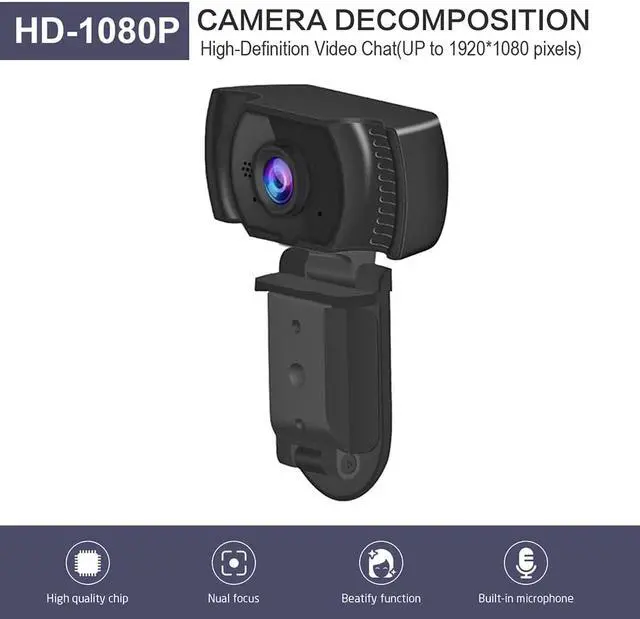 Full 1080P Webcam with Built-in Microphone Widescreen USB Web Camera for Video Conference Live Streaming