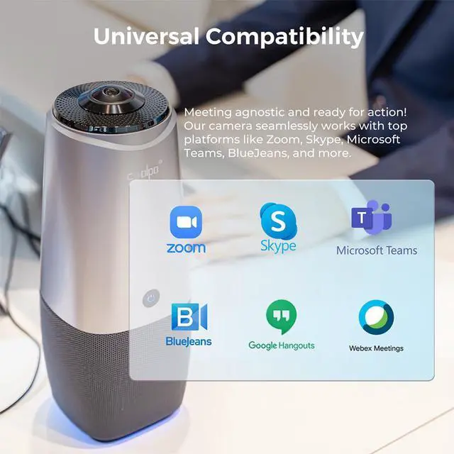 Camera with Microphone and Speaker for Video Conference supports Microsoft operating system. It is compatible with all leading online conferencing software: Zoom, Skype, Google hangout, Cisco WebEx, Microsoft Team, etc.