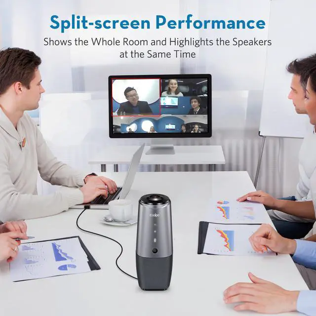 PANA video conference camera Enables 1080P, 720P HD video calling, the conference webcam provides multiple scenes in your meeting software including the whole conference room, automatically highlights and shifts focus to different people. 360°horizontal and 60°vertical field of view self-controlled video pan, tilt, zoom ensure whole group visibility.