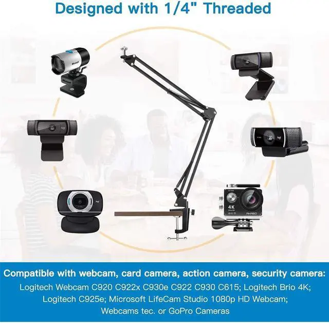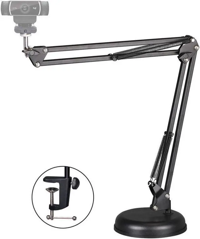 Why settle for less when you can optimize your video recording and broadcasting experience with our Web Camera Suspension Crane Arm with Base & Desk Clamp This versatile tool is designed to offer smooth, precise positioning with its swivel mount, ensuring your webcam captures the perfect angle every time. The adjustable height feature allows for easy customization, catering to both higher and lower positioning needs. Additionally, the forward and backward adjustments provide even more flexibility, making it an ideal choice for various recording scenarios. This suspension crane arm is compatible with a range of Logitech Webcams, including the C922, C930e, C930, C920, and C615 models, thanks to its standard 1/4-inch screw hole.