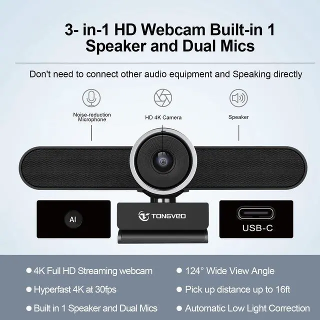 - Ai-Powered Auto Framing 4K Webcam With Special Clip For Computer Or Smart Tv. The Ai Webcam Features A 4K Image Sensor And Face Recognition ,Keep Tracking And Focusing On The Speaker. The Upgraded Noise Reduction Mode Microphones With Speaker Works To Reduce Background Noise. It Picks Up Any Participants' Voices More Clearly. The Webcam Clip Special Designed To Put On A Larger Tv Or Monitor For A Group Conference Setting, It Can Securely Hold On To A Thicker Tv Screen Or Monitor .