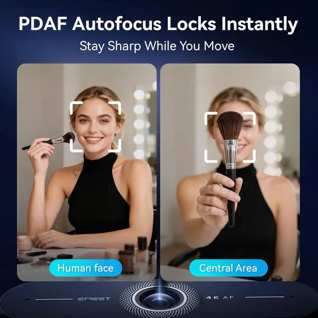 EMEET C60E 4K Webcam with Tripod, Streaming Camera with PDAF Autofocus, Dual Microphones, Auto Light Correction, 73° FOV, Plug & Play USB Webcam for Live Streaming, Gaming & Real-Time Interaction