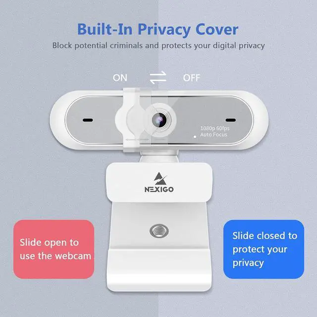 NexiGo N660P 1080P 60FPS Webcam with Software Control, Dual Microphone & Cover, Autofocus, HD USB Computer Web Camera, for OBS/Zoom/Skype/FaceTime/Teams/Twitch, White