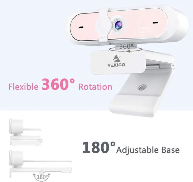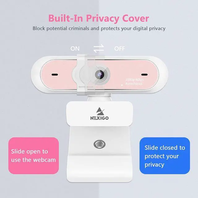 NexiGo N660P 1080P 60FPS Webcam with Software Control, Dual Microphone & Cover, Autofocus, HD USB Computer Web Camera, for OBS/Zoom/Skype/FaceTime/Teams/Twitch, Pink