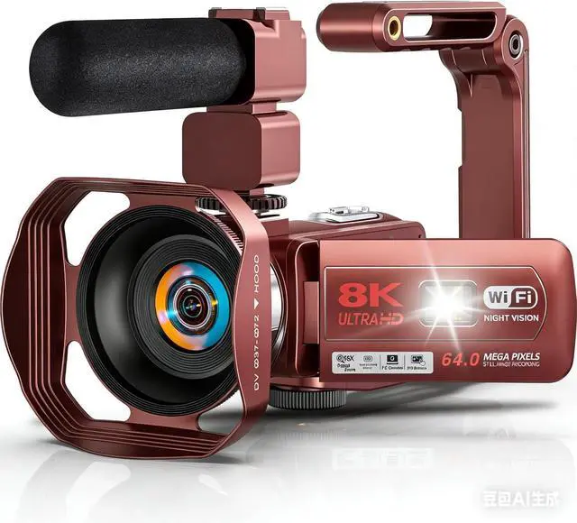 IR Night Vision & Fill Light FunctionEquipped with infrared night vision capability, this camcorder allows for capturing clear black and white photos and videos in low-light environments. The vlogging camera also features a fill light function to ensure natural, high-definition images. Additionally, the infrared night vision 8K camera comes with a microphone, enabling relatively clear sound even in noisy environments.