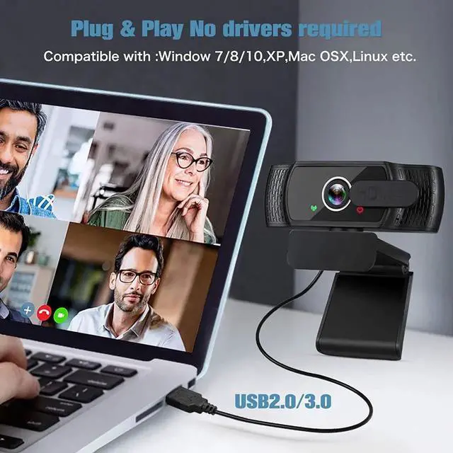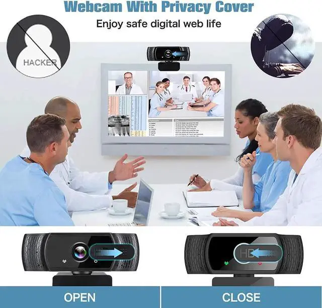 1080P Webcam for PC, HD Webcam with Microphone, PC USB Webcam with Privacy Cover, Plug and Play, Streaming Web Camera for Zoom, Skype, Online Classes, Video Calling, Conference