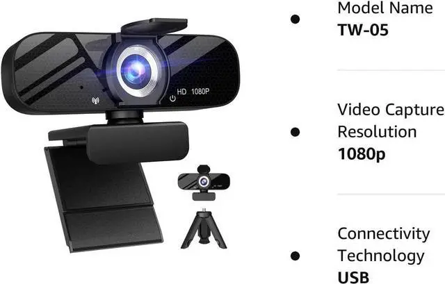 Full HD Video and Wide Angle Lens - The Tewiky High Definition 1080p Webcam features a wide angle lens and delivers crisp images and fluid video at 30 frames per second. The camera is equipped with automatic light correction technology and can automatically adjust the image brightness and restore color according to the ambient light, helping you achieve the best optical effect.
