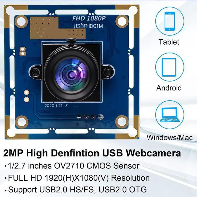 2Megapixel 1/ 2.7 " CMOS OV2710 image sensor, 1080P Full HD high resolution USB Camera module, high pixel technology for sharp image and accurate color reproduction.