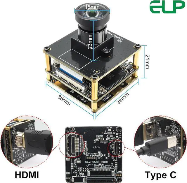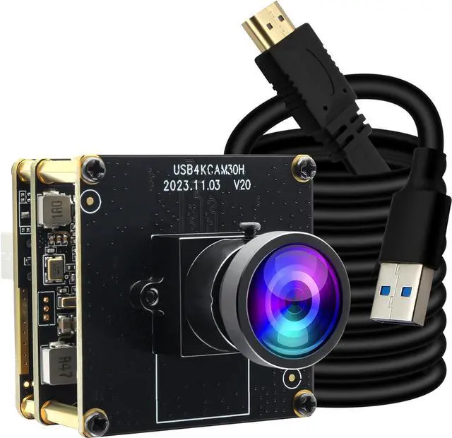 ELP 4K 60fps HDMI USB3.0 Camera for Computer Wide Angle PC Camera Mini Lightburn Camera for Laser Engraver 2X Digital Zoom USB Security Camera for Laptop Ras pi Jetson Nano (120° low distortion lens)