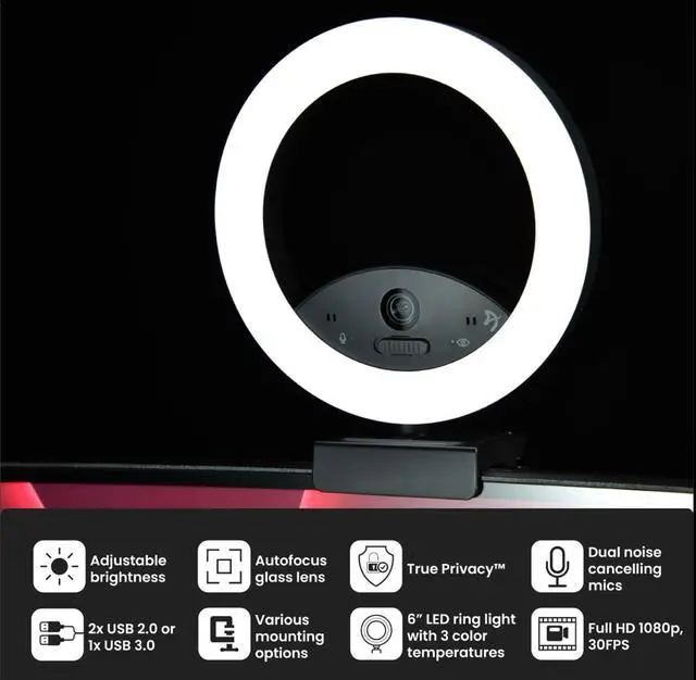 The Arozzi Occhio RL Webcam with Ring Light is designed for anyone looking to elevate their online presence, combining superior video, adaptable lighting, and user-friendly functionality in one sleek package.