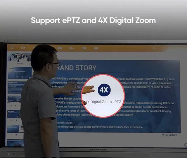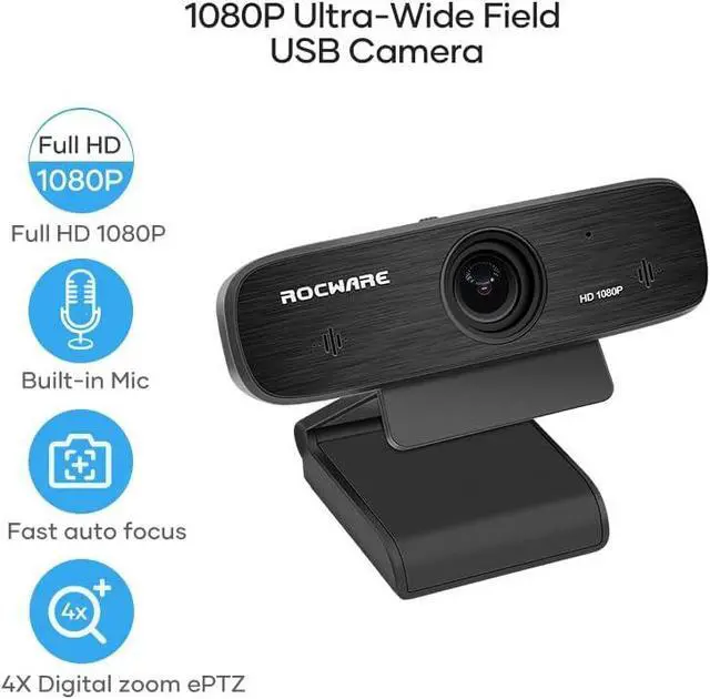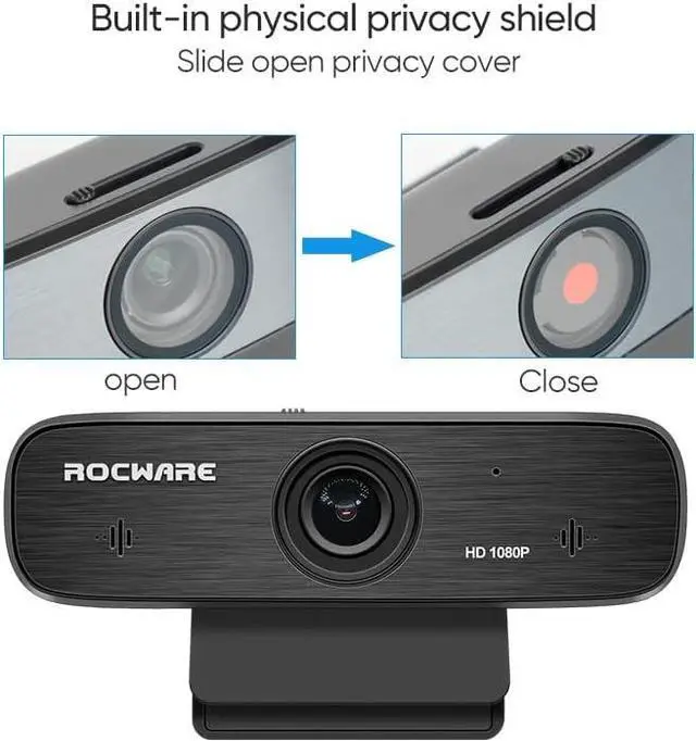 ROCWARE RC19 is a new professional Full HD Conferences and Live Stream USB Camera. It has 90 degree FOV with large 1/ 2.7 inch high quality CMOS sensor, support autofocus and have a privacy cover. Built-in dual omnidirectional pickup microphones, unique noise suppression and AGC algorithm. In addition, it also supports electronic PTZ function, 4x digital zoom